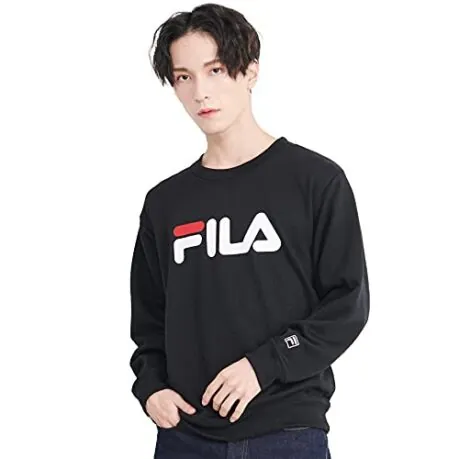 [フィラ] スウェット 裏起毛 メンズ トレーナー クルーネック 丸首 プルオーバー 長袖 ワンポイント ロゴ 刺繍 スタンダード 人気 大きいサイズ ゆったり 部屋着 ルームウェア トップス 韓国 春 秋 冬 男女兼用 FH7208 ブラック M