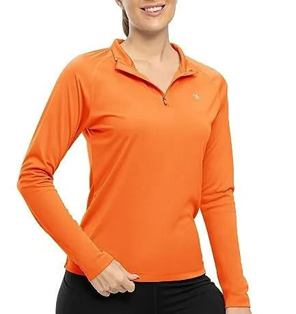 [TBMPOY] 長袖シャツ レディース ハーフジップ テニスウェア ゴルフシャツ ロング スポーツウェア 速乾 tシャツ uvカット トップス ジョギングシャツ バドミントンウェア オレンジ M